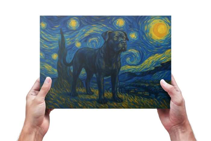 Most prints ship within 3–5 working days. If you’ve added a new Pawcasso Studio portrait, please allow a few extra days for artwork creation and approval before printing.
